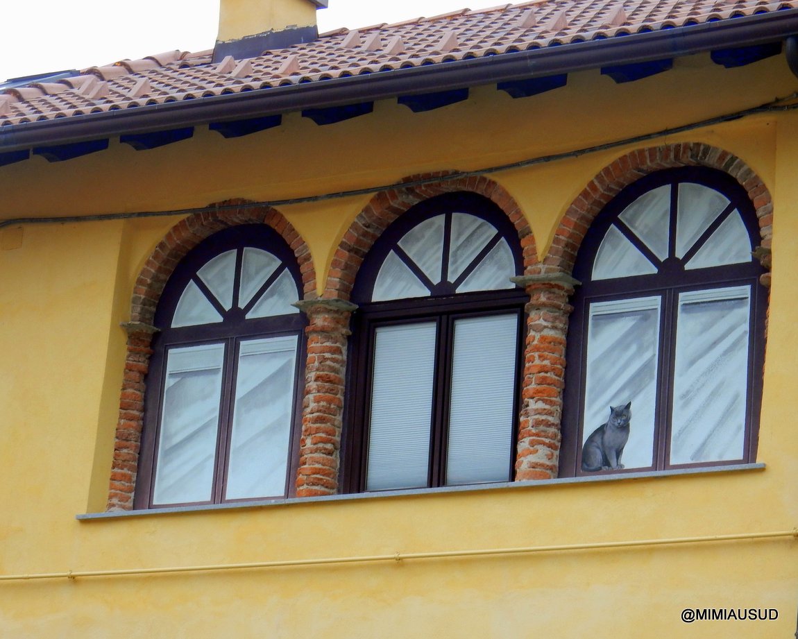 Celle de dessous avec son chat et, le reflet de la maison d'en face avec ses fenêtres éclairées. Trompe l'œil !